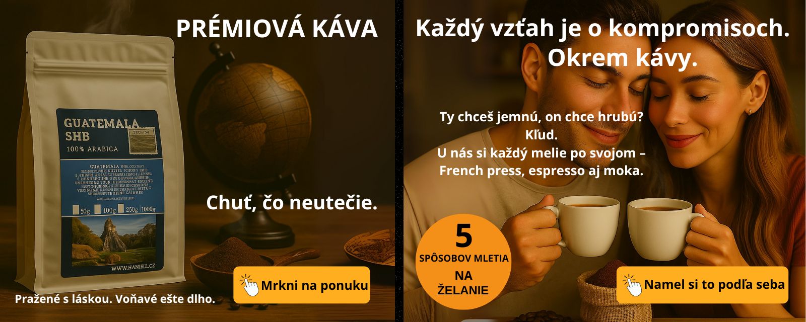 Káva nie je len nápoj. Je to chvíľa, keď sa zastaví čas, vôňa, ktorá otvorí srdce, a malý sviatok uprostred obyčajného dňa. Každý šálok je pripomienkou, že radosť nemusí byť veľká, aby bola skutočná. S Haniell objavujete kávu, ktorá vonia pokojom, chutí poctivosťou a prináša energiu do života.